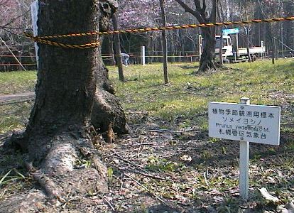 北海道神宮の境内にある桜の花の開花の基準になる、標本木です。